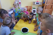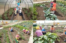Под окнами нашего детского сада создан самый настоящий огород. Сколько радости доставили детям первые посадки. В группах вырастили рассаду капусты, перца, огурцов, помидор. Кроме того семенами посадили тыкву, свеклу, горох, укроп, морковь, салат. Дети вместе с воспитателем ежедневно ухаживают за растениями, поливаю, полют, рыхлят землю, наблюдают за ростом. Наличие огорода в детском саду способствует осуществлению непосредственного контакта ребенка с объектами природы, это «живое» общение с природой, наблюдение и практическая деятельность по уходу за растениями.