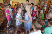 Сегодня, в "День именинника", педагоги объясняли детям, чем "день рождения" отличается от "именин". Дети охотно вспоминали истории про свои дни рождения и, особенно, про подарки. В завершении прозвучал всеми любимым "Каравай".