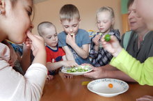 В течение 2-х месяцев все ухаживали за рассадой, пололи, поливали, привязывали плети и, конечно же, наблюдали за ростом овощей. И вот наконец-то наступил день сбора урожая. Дети снимали урожай овощей, а затем все дружно съели огурец и помидорку, выращенные своими руками. Было очень вкусно.