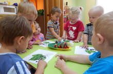 Мы с детьми рассматривали картинки с изображением смородины, поговорили о полезных свойствах смородины, отгадывали загадки про смородину. Малыши рисовали пальчиками "Вкусную смородинку".
