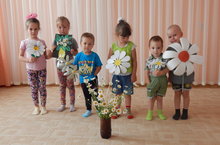 Сегодня мы решили устроить в детском саду «День ромашек». Предварительным этапом этого дня послужил конкурс изготовления родителей с детьми ромашек из бросового материала. Воспитатели провели беседу с детьми «Ромашка – лечебные свойства и применение». Ребятишки отгадывали загадки о ромашке; рассматривали иллюстрации с изображением ромашек. Заключительным этапом этого дня стало рисование на тему «Букет ромашек».