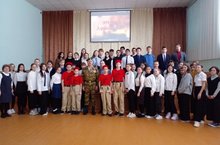 Сегодня прошла встреча с воином-афганцем Зиатдиновым И.Р., посвященная военно - патриотическому воспитанию молодого поколения. С большим интересом все присутствующие посмотрели фильм «Хроника афганской войны». После страшных кадров и волнующих цифр, ученики с охотой слушали Ильсура Раисовича и задавали интересующие их вопросы. В своих выступлениях гость рассказал о себе, своем жизненном пути, о том, как он оказался участником военных действий. Всем очень понравилось мероприятие. И после напутственных добрых пожеланий ребятам от афганца, было решено продолжить традицию встреч и запечатлеть это событие на фото.