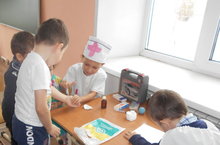 Для закрепления полученных знаний о профессиях-доктор и медсестра с воспитанниками была проведена сюжетно-ролевая игра ,,Доктор,,