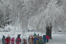 Цель-познакомить с признаками зимы,учить наблюдать за явлениями природы и устанавливать простейшие связи между ними .Обращать внимание детей на красоту природы.