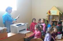 Балалар белән китапханәгә экскурсиягә бардык.Гөлфия Хәсән кызы кызыктыргыч,мавыктыргыч итеп китаплар турында сөйләде.Балалар язучылары .шагыйрҗләре белән таныштырды.