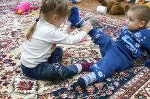 Йомшак,яңа келәмдә балалар рәхәтләнеп уйныйлар.