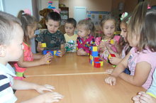 Балалар төрле төстәге шакмакларны җыеп уйнарга яраталар.Зурлар кечкенәргә төсләрне өйрәтә.