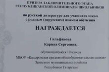С 07 по 09 февраля 2024 года на базе оздоровительно – образовательного комплекса «Дуслык» ГАОУ «Республиканский олимпиадный центр» проведен заключительный этап республиканской олимпиады школьников по литературе среди учащихся школ с обучением на родном (нерусском) языке. По итогам олимпиады призером стала Гильфанова Карина (10 класс). Подготовила учитель русского языка и литературы Галиуллина Альфия Равиловна. Молодцы! Так держать!!! Дальнейших Вам успехов!!! #заинскийрайон #мбоукадыровскаясош #олимпиада #литература #10класс #Минпросвещения #НавигаторыДетства #Росдетцентр #НавигаторыДетства16 #НавигаторыСПО #ГодСемьи #МинОбрНаукиРТ #КомандаВоспитанияРТ @moinrt16 -- 09.02.2024