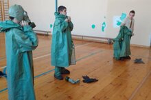 Учащиеся 9-11 классов сдают нормативы по одеванию ОЗК (общевойсковой защитный комплект). 05.12.2023