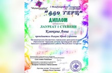 Стали известны результаты I Международной олимпиады по сольфеджио "440 ГЕРЦ", проходившей в конце мая в дистанционном режиме. Учащаяся Заинской детской музыкальной школы Клюкина Анна (преподаватель Рыжова Ирина Сергеевна) отлично справилась со сложнейшими заданиями олимпиады и завоевала звание Лауреата I степени. Поздравляем!