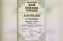01-10.08.19г. в Концертном зале мэрии города Кемер (Турция) проводился Международный конкурс «SHOWMIR»- «Дом Солнца Турция», на котором ученик Заинской детской музыкальной школы Муханов Эмиль (класс гитары преподавателя Селиверстовой Зульфии Харисовны) стал победителем конкурса, завоевав звание Лауреата I степени. -