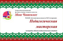 24 - 25 марта в г.Набережные Челны была проведена площадка обмена опытом "Педагогическая мастерская" (в заочной форме) в рамках Открытого республиканского фестиваля-конкурса татарского искусства "Мон чишмэсе". Цель Педагогической мастерской: организация обмена опытом работы педагогов образовательных организаций Республики Татарстан по вопросам национального художественно-эстетического воспитания учащихся. В работе площадки в этом году приняли участие 110 педагогических работников, среди них преподаватель нашей школы Красильникова Надежда Васильевна. Её работа - статья "Отсутствие инструментальных татарских фольклорных ансамблей - одна из современных проблем этнохудожественного образования" вошла в сборник публикаций Педагогической мастерской 2022, который был сформирован по итогам работы площадки обмена педагогическим опытом.