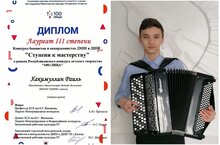 Стали известны результаты конкурса баянистов и аккордеонистов ДМШ и ДШИ "Ступени к мастерству" в рамках Республиканского конкурса детского творчества "100 //ЛИЦА" в городе Казани. Ученик 8 класса Хакимуллин Раиль стал Лауреатом III степени в старшей группе (преподаватель Красильникова Надежда Васильевна).
