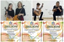 В номинации «Струнно-смычковые инструменты» Зарипова Сагдия и Стогова Софья - Лауреаты I степени, класс преподавателя Кадыровой Люции Павловны, концертмейстеры Варламова Алина Владимировна, Жигалова Татьяна Петровна.