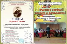 22 мая в Детской школе искусств имени М.А.Балакирева города Смоленска состоялся I Всероссийский конкурс исполнителей на балалайке «Русское сердце живет в балалайке», посвященный 160-летию со дня рождения В.В.Андреева. Из разных уголков России пришло свыше 100 заявок от юных балалаечников, которые соревновались в мастерстве в трех номинациях: сольное исполнительство, ансамбли и оркестры народных инструментов.