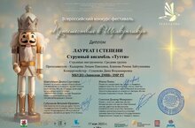 Стали известны результаты Всероссийского конкурса-фестиваля "Путешествие к Щелкунчику". Струнный ансамбль "Тутти" (Ансамбль скрипачей и виолончелистов) стал обладателем диплома Лауреата l степени! Поздравляем ребят, руководителей Кадырову Люцию Павловну, Блинову Римму Зайтуновну и концертмейстера Семёнову Дину Владимировну! Так держать!