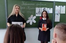 13.02.2023 года В рамках месячника "Патриотического воспитания" мастера производственного обучения Ю.А. Демидова и С.Н. Кырмагина а также студентка группы 812 по профессии "Кондитер" Нормуратова Зарина посетили МБОУ Зсош №7 3 "В" класс
