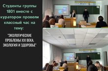 21 января 2022 года студенты группы 1801 по специальности «Технология продукции общественного питания» вместе с куратором провели классный час на тему «Экологические проблемы XXI века»
