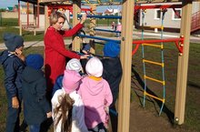 Физкультурная площадка в нашем детском саду оборудована детским спортивным комплексом. Конечно же, это любимое место для всех детей! Но одновременно и опасное. Чтобы это оборудование приносило только радость и удовольствие, детей нужно ознакомить с правилами безопасности во время игр на комплексе. Воспитатель подготовительной группы «Волшебники» Иванова Н.С. напомнила детям об этих правилах: держаться крепко руками, не забираться с мокрыми руками или если оборудование мокрое, с осторожностью пользоваться комплексом, если на нем одновременно находятся несколько человек во избежание столкновений и др.
