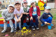 Первые социальные игры возникают в песочнице. Строя на песке, ребенок выражает мир своей души, полный фантазий и реальности. Создание условий «Песок – вода» – одна из тех техник, которая позволяет раскрыть эти способности. Песок пропускает воду, а также поглощает негативную психическую энергию. Взаимодействие с песком очищает энергетику человека и стабилизирует его эмоциональное состояние. Игры с песком позитивно влияют на «эмоциональное самочувствие, и это делает его уникальным средством для развития ребенка. Опыты и эксперименты с песком способствуют формированию у детей познавательного интереса, развитию наблюдательности эмоциональности в общении с окружающим миром. Дети из группы «Самоцветики» провели свой первый опыт на свежем воздухе. И «приготовили» пирог для всего детского сада.