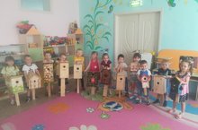 Менә буген “Сандугачлар” төркеме һәм этиләр белән берлектә агачларга сыерчык ояларын элеп чыктылар. Алар бик тырышты һәм без парк тирәсендәге агачларга булышчыларыбыз ярдәмендә сыерчык оясы элеп куйдык. Ә безнең балалар өчен бу бик зур вакыйга булды: кемдер ояны ничек ясаганын, кемдер әтисенең ничек итеп ояны биеккә куйганын, кемдер үзенең оясының иң матуры булуын сөйләде. -