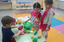 Одна из любимых детских игр – в «Магазин». Детям нравится чувствовать себя продавцом, обслуживать покупателей. Эта сюжетно-ролевая игра носит обучающий и познавательный характер – особенно если у ребёнка есть необходимые для игры в «магазин» аксессуары: товары, денежные знаки, «монеты» и «купюры», а также касса - отличное дополнение для игры! Воспитанники средней группы "Звездочки" с удовольствием играют в эту игру.
