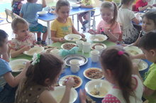 В нашем саду организовано 5-разовое питание, согласно 10-дневному меню, разработанного на основе физиологических потребностей в пищевых веществах и нормах питания. Составляется меню-требование установленного образца с указанием выхода блюд для детей от 2 до 7 лет. Ведется бракераж готовой продукции с регулярной оценкой вкусовых качеств. Выдача пищи с кухни проводится только после снятия пробы членами бракеражной комиссии с отметкой в журнале о вкусовых качествах готовых блюд. Оставляется суточная проба, выставляется контрольное блюдо.