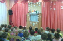 Сегодня творческая группа ДОУ в составе педагогов Чумаковой А.П., Алексеевой В.В., Хасановой Т.М., Семеряковой Л.П. показали кукольный театр на татарском языке народного писателя Абдуллы Алиша «Глупый Зайчонок». Счастливые улыбки, горящие глаза и радостные лица малышей после просмотра спектакля, кукольного театра убедительно свидетельствуют, как дети любят театр.