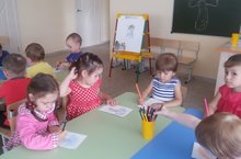 Так в 1 младшей группе “Сандугачлар» прошло занятие по художественно-эстетическому развитию: «Грибок». Малыши старались разрисовать элементы гриба методотом штриха.