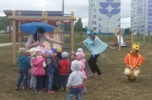Вот и сегодня при пасмурной погоде для малышей было проведено развлечение «Солнышко и тучка», где они играли, танцевали и отвечали на вопросы.