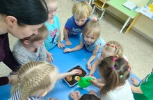 Сегодня воспитанники средней группы Золотые зернышки совместно с педагогом посадили зеленый лучок, дети с большим интересом наблюдали, а кто то даже и помогал в процессе. Совсем скоро на нашем окошечке появиться зеленый витаминчик.