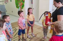 Рассказать о профессии пожарного, раскрыть значимость его труда помогут экскурсии в пожарную часть, где детей особенно впечатлит знакомство с пожарной машиной.Не менее познавательной может стать экскурсия по детскому саду, где воспитатель обратит внимание детей на знаки и пути эвакуации, огнетушители, устройства пожарной сигнализации.