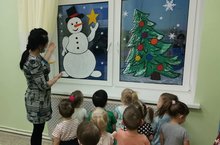 Яңа елга төрле рәсемнәр белэн тәрәзәләрне бизәү безнең «Самоцветики»төркеме әти-әниләре белән бергә күркәм гадәткә әверелде. Әйтерсең лә әкияттән – пыяладагы бизәкләр, Кыш бабайның кулы белән ясалган. Бу әкияти яңа ел алды кәефе тудыра . -