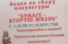 "Бумаге вторую жизнь" - под таким девизом с 01.10 по 31.10.2021 года мы запустили акцию по сбору макулатуры.