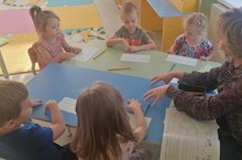 Например кружок Слоговичок, который с 1 сентября 2021 года возобновил свою работу. Занятия проходят очень увлекательно и интересно, совместно с педагогом дополнительного образования Гильмановой Гульнарой Равефовной.