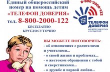 Телефон доверия – это не только доступный вид психологической помощи детям и подросткам, но и путь восстановления личности через восстановление доверия. По указанному номеру телефона можно получить квалифицированную, консультационно-психологическую, анонимную помощь, в случаях жестокого обращения насилия в семье в отношении детей, также включая случаи сексуального насилия как в семье, так и за ее пределами.