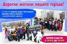 Спешим вам сообщить,что с 3 по 13 января состоится смена дворового лагеря "Зимний двор" по проекту "Лагерь моего двора"На дворовых площадках города наших детей будут ждать кураторы из педагогического отряда "Легенды 17", веселые игры и интересные мероприятия.