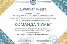 Участники команды Боробова Камилла, Козлова Наталья, Баянов Игорь, Николаев Ярослав, Дериглазов Тимур, Кошенков Дмитрий, Ширкунов Герман завоевали призовое место. Поздравляем ребят и руководителя команды!!!