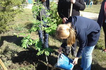Во время проведения акции " Неделя леса " учащиеся старших классов посадили несколько кустов рябины на территории школы