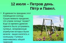 На Петров день люди устраивают ярмарки с торгами, народные гуляния с танцами и песнями.