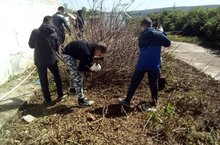 Учащиеся 7 класса вместе с учителем технологии очистили цветники от сухостоя.