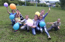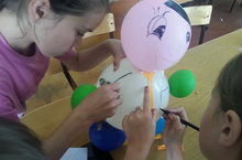 Мы сегодня собрались на конкурсное мероприятие, которое назвали «Рыцарский турнир». Рыцари нашего лагеря проходили испытания. Одно из них называлось "Фехтование". Рыцарям необходимо было пронести как можно быстрее воздушный шарик до места назначения на ладошке и не уронить.