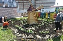 Учащиеся нашей школы во время летних каинкул приводят в порядок цветочные клумбы