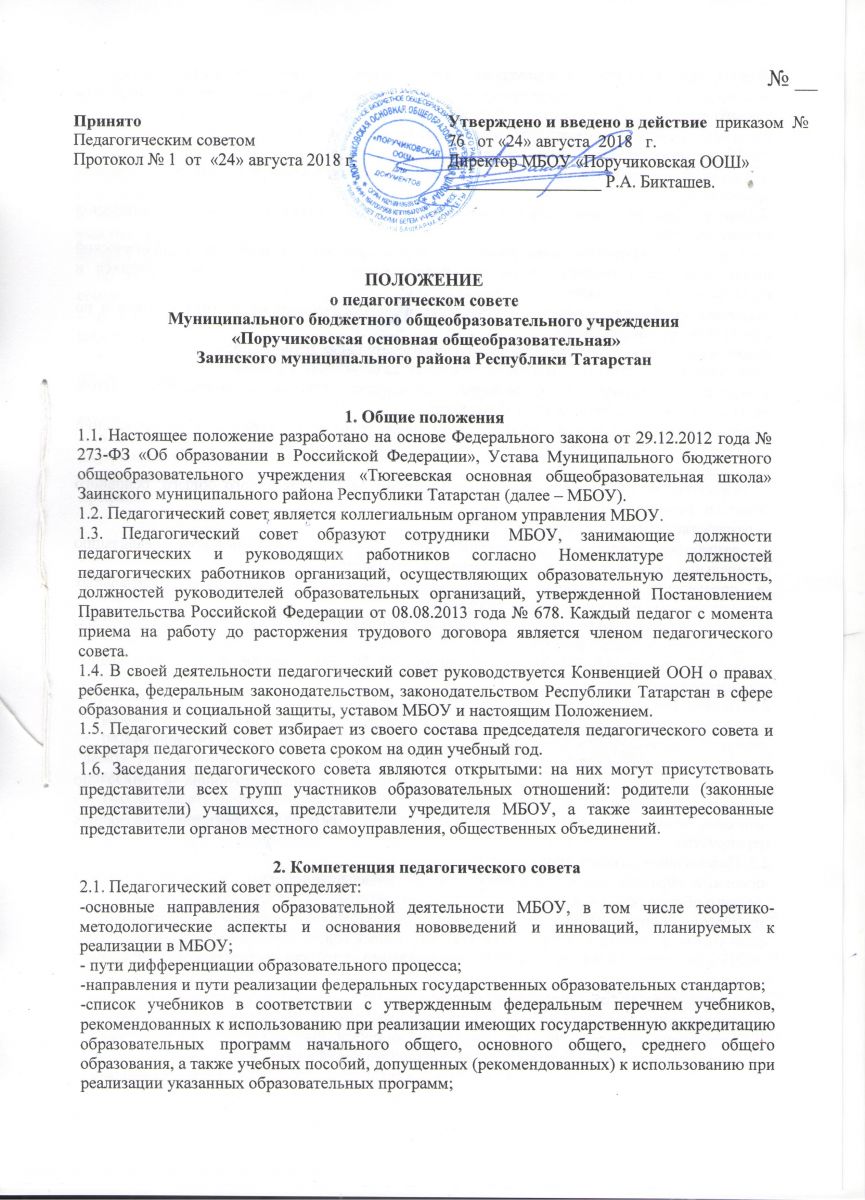 Положение о педагогическом совете школы