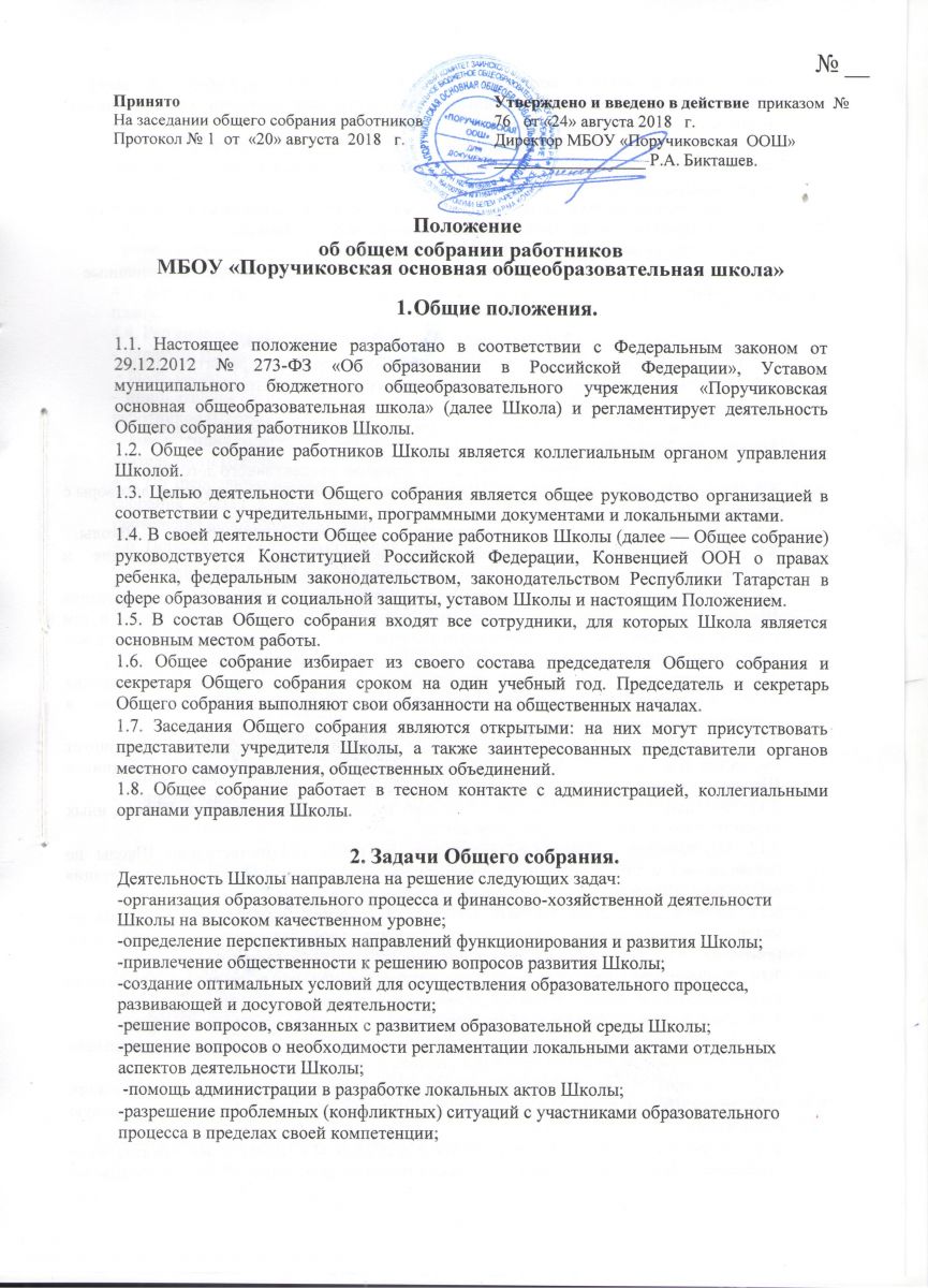 Положение об общем собрании работников школы