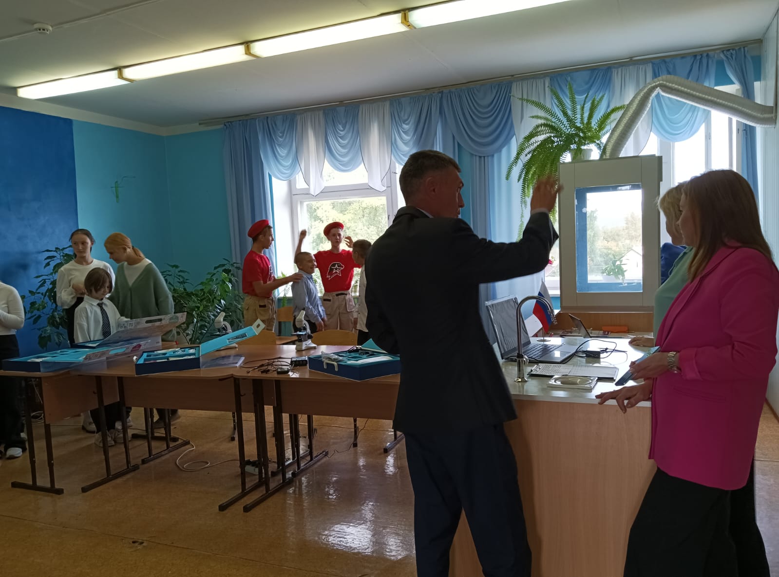 Для работы «Точки Роста» в школу поступило следующее оборудование: цифровые лаборатории, ноутбуки, микроскопы, оборудование для проведения опытов, конструкторы для робототехники.