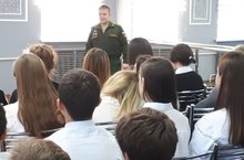 В рамках посвященной памятной дате военной истории России - Дню ракетных войск и артиллерии была организована встреча с командиром танковой роты гвардии капитаном Минаевым А.М.