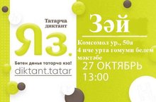 Игътибар, 2018 елның 27 октябрендә Зәй шәһәренең 4нче мәктәбендә 13.00 сәгатьтә сезне «Татарча диктант» акциясендә катнашырга чакырабыз! Бу чара Татарстанда гына түгел, ә 20 илдә һәм 60 төбәктә уза! Димәк, бөтен дөнья бер көнне татарча язачак!