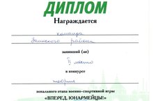 По итогам соревнований по сборке магазина АК–74 1 место заняла Поровозова Аделина. 3 место у Соловьева Максима по сборке–разборке автомата, 3 место у Лопатина Романа по метанию. Командное 2 место по теории и 3 место по строевой подготовке.