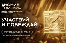 Просветительская награда Знание. Премия Российского общества «Знание» учреждена для признания достижений российских деятелей, педагогов, лекторов, авторов, блогеров в области просвещения, популяризаторов науки, а также чтобы отметить просветительские проекты из разных областей и компании. В 2025 году проходит в пятый раз.